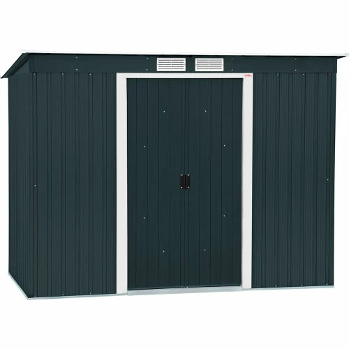 The Pent Roof Shed features a 8′ wide format that’s ideal for smaller yards or patios. This shed features a strong dent resistant walls. The assembly is very simple and requires only a few household tools.