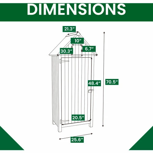 - Outdoor Wooden Storage Shed with Pitched Roof, 3 Shelves and Locking Latch