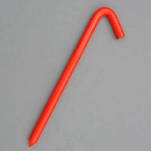 - A heavy duty steel hook stake with a baked on Safety Orange enamel finish.
