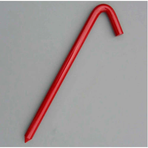 - A heavy duty steel hook stake with a baked on Red enamel finish.