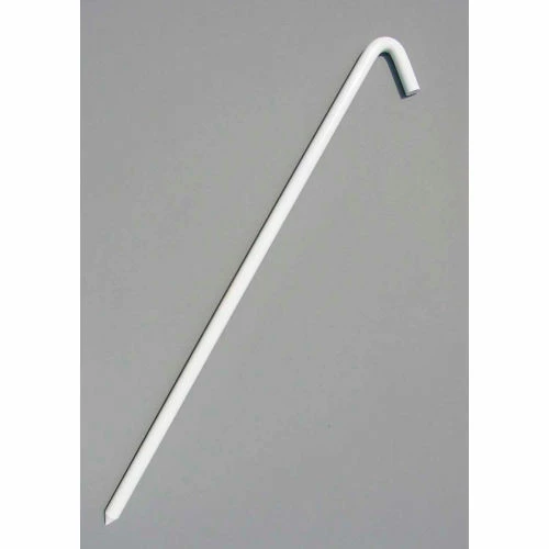 - A heavy duty steel hook stake with a baked on Bright White enamel finish.