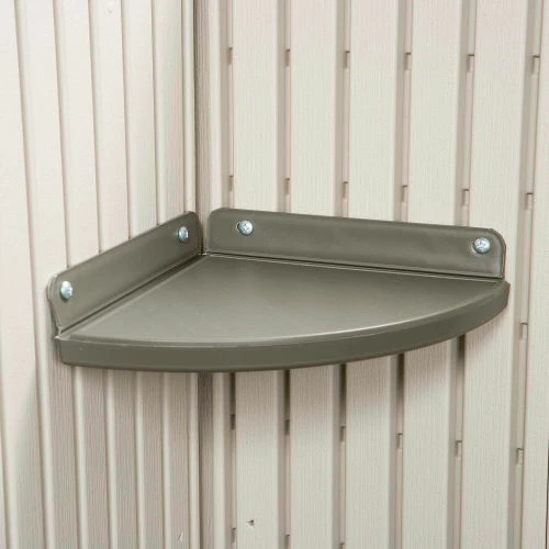 Optimize space in your Lifetime® Storage Shed with the addition of the Corner Shelf kit. Keep tools, supplies and equipment neatly stored and organized. The two (2) 9.5″ radius corner shelves are designed for all Lifetime 7ft., 8 ft., 10 ft., and 15 ft. wide outdoor storage buildings. Comes in black and installation hardware is included. Lifetime® Storage Sheds (sold separately).