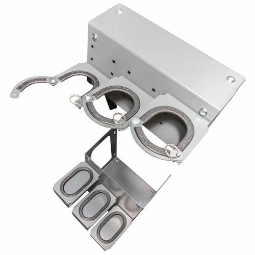 Lock your rifles in the security of the ESP Safety Shelter™ away from children. The ESP Safety Shelter™standard gun rack can be attached to several locations in the ESP Safety Shelter™. The simple bolt on construction makes for easy installation and removal. Three steps of adjustment on the top and bottom secure points to fit virtually any rifle. Holds 3 guns. Designed to be used with Swisher® ESP Safety Shelters™.