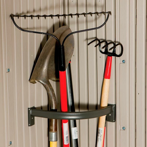 Optimize space in your Lifetime® Storage Shed with the addition of the Corner Tool Corral. Keep tools, supplies and equipment neatly stored and organized. Tool Corral helps store rakes, shovels and brooms in the corner of your shed. Fits all 8-foot, 10-foot, and 15-foot wide Lifetime storage buildings with horizontal siding. Not compatible with sheds with vertical siding or any sizes not specified here.